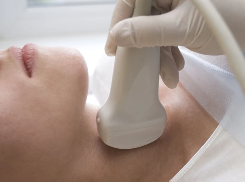 Istotne jest także USG tarczycy, które nie jest co prawda formalnie niezbędne do rozpoznania choroby Hashimoto, jednak warto być pewnym, że w tarczycy nie ma niepokojących guzków lub innych nieprawidłowości. Badanie jest wykonywanie w ramach NFZ na podstawie skierowania od lekarza rodzinnego lub endokrynologa. W przebiegu choroby Hashimoto tarczyca może być nieco zmniejszona, ale bez żadnych guzków, niepokojących ognisk, zaś okoliczne węzły chłonne nie budzą żadnego niepokoju. Typowe dla hashimoto jest tzw. niska echogeniczność tarczycy, czyli skutek toczącego się procesu zapalnego (nacieków limfocytarnych, zmniejszenia wymiarów pęcherzyków tarczycy, zmniejszenia objętości koloidu a wzmożonego unaczynienia). Echogeniczność tarczycy we wczesnej fazie zapalenia może być prawidłowa, ale z czasem trwania procesu zapalnego obniża się.