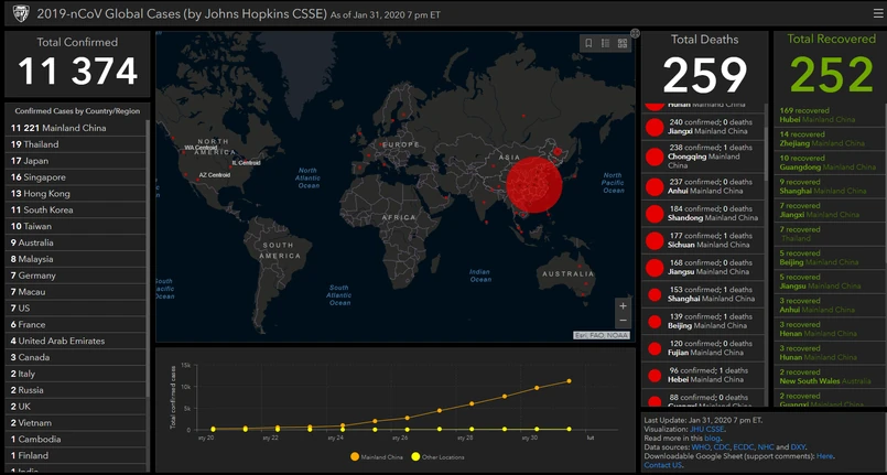 Zbudowaliśmy tę mapę, ponieważ chcemy, by ludzie wiedzieli, jak wygląda sytuacja. Do tego dane, które zbieramy, będą też bezcenne dla naukowców - mówi telewizji CNN Lauren Gardner, dyrektor katedry nauki i inżynierii na uniwersytecie Johnsa Hopkinsa. Jak tłumaczy, naukowcy pobierają dane z oficjalnych źródeł - amerykańskich i europejskich agencji do walki z chorobami zakaźnymi, WHO oraz chińskiego centrum walki z chorobami. Każdy przypadek wykrycia zarażonego pacjenta jest natychmiast nanoszony na mapę wraz z opisem. Mapa pokazuje też ilość zgonów oraz liczbę wyleczonych pacjentów.