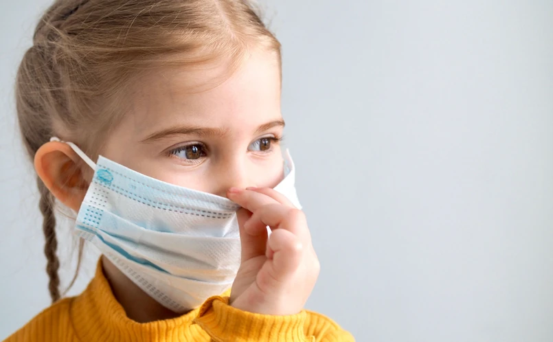 Chłopiec w maseczce przyznał, że nie pamięta tego, co było wcześniej i wie tylko, że kiedyś nie było Covidu.