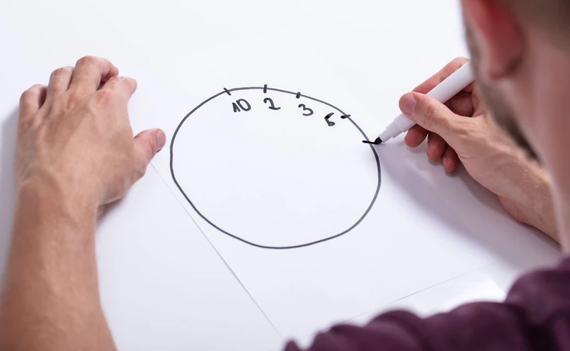 Podczas tego testu pacjent jest proszony o narysowanie tarczy zegara, umieszczenie wszystkich cyfr i ustawienie wskazówek na określony czas. Na przykład: „narysuj godzinę jedenastą dziesięć”.