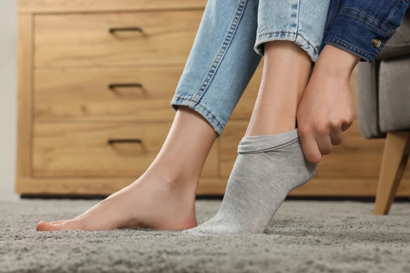 "Test starego człowieka" pozwala określić umiejętność utrzymania równowagi. Potrzebne będą skarpetki i buty. Jak wykonać test? Należy stanąć prosto, a następnie unieść jedną nogę, po czym - cały czas utrzymując uniesioną nogę i nie dotykając nią podłogi - sięgnąć po skarpetkę i nałożyć ją na uniesioną nogę. Kolejny krok to nałożenie i zasznurowaniebuta na uniesionej nodze. Później należy postawić nogę na ziemi i powtórzyć całość z drugą nogą. Poniżej znajdziesz filmik z instrukcją, jak wykonać "test starego człowieka".
